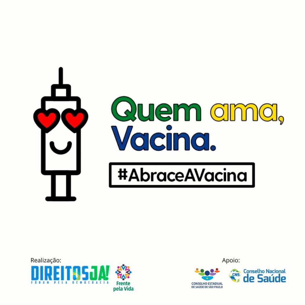 “Abrace a Vacina” é o mote da campanha lançada pela Frente pela Vida e pelo Direitos Já! Fórum pela Democracia, com o objetivo de incentivar a população a se vacinar contra o novo Coronavírus. A Comissão de Comunicação, Informação e Educação Permanente dos Conselheiros e Instituições da Sociedade Civil Organizada acompanhou e divulgou a “live” de lançamento bem como as artes e hashtags da campanha nas redes sociais.