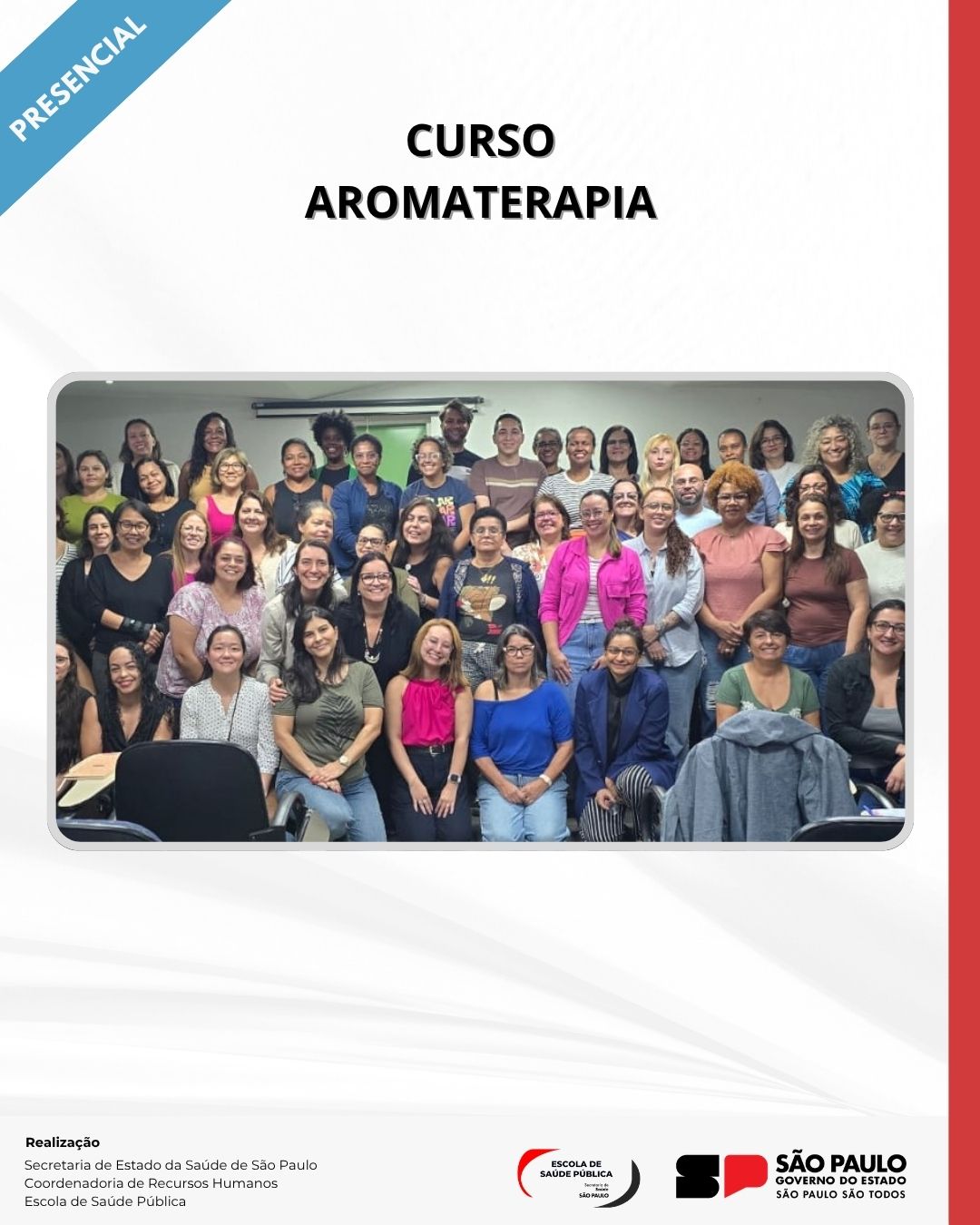 Nos dias 19 e 20 de março de 2026, a Escola de Saúde Pública da Coordenadoria de Recursos Humanos SES/SP promoveu o Curso de Aromaterapia, com carga horária de 10 horas. A formação foi conduzida pela instrutora Psicóloga Roseli Murauskas e organizada pelo Centro de Treinamento e Desenvolvimento, com o objetivo de ampliar o conhecimento e a aplicação das Práticas Integrativas e Complementares em Saúde (PICS).