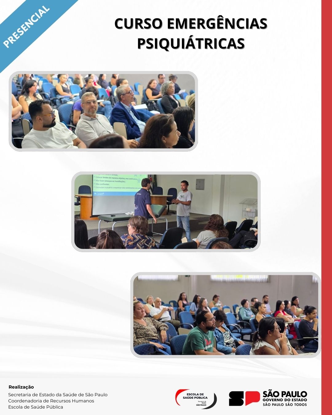 A Escola de Saúde Pública ESP da Coordenadoria de Recursos Humanos da Secretaria de Estado da Saúde, realizou mais uma edição do Curso de Emergências Psiquiátricas, voltado à capacitação de trabalhadores da saúde para uma atuação qualificada em situações críticas relacionadas à saúde mental.