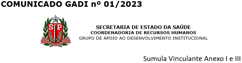 O Grupo de Apoio ao Desenvolvimento Institucional (GADI) tem suas atribuições definidas no Decreto nº 51.767/ 2007 que reestruturou a Coordenadoria de Recursos Humanos. Destaca-se entre as suas atribuições subsidiar os processos de gestão dos Recursos Humanos no âmbito da Secretaria de Estado da Saúde, bem como no âmbito do SUS no Estado de São Paulo.