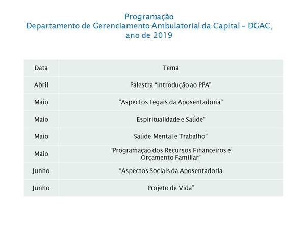 Pautado nesses estudos e em nossa observação não sistemática no cotidiano, com funcionários do Departamento de Gerenciamento Ambulatorial da Capital DGAC e suas unidades subordinadas, este Centro de Recursos Humanos e do Setor de Treinamento e Desenvolvimento, vimos apresentar projeto para implantação de Programa de Preparação para a Aposentadoria - PPA - tendo como proposta, oferecer subsídios ao servidor em período pré-aposentadoria, para conscientização, avaliação e planejamento do novo ciclo da vida