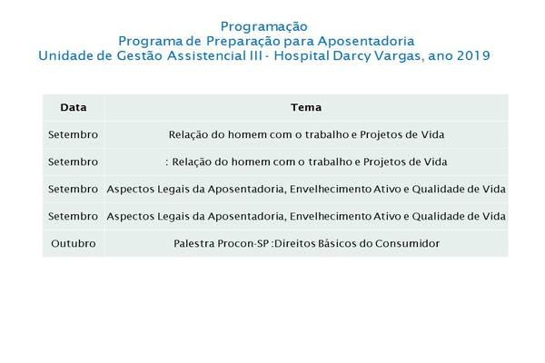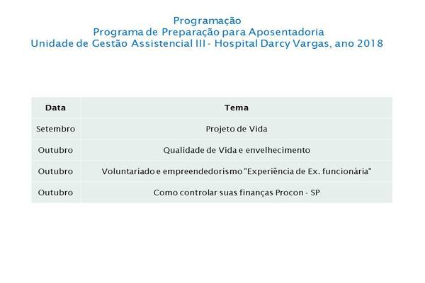 No ano de 2015 participou do Programa de Preparação para a Aposentadoria, que tem como objetivo promover ações para que os colaboradores desta Instituição possam chegar neste novo ciclo da vida com qualidade.