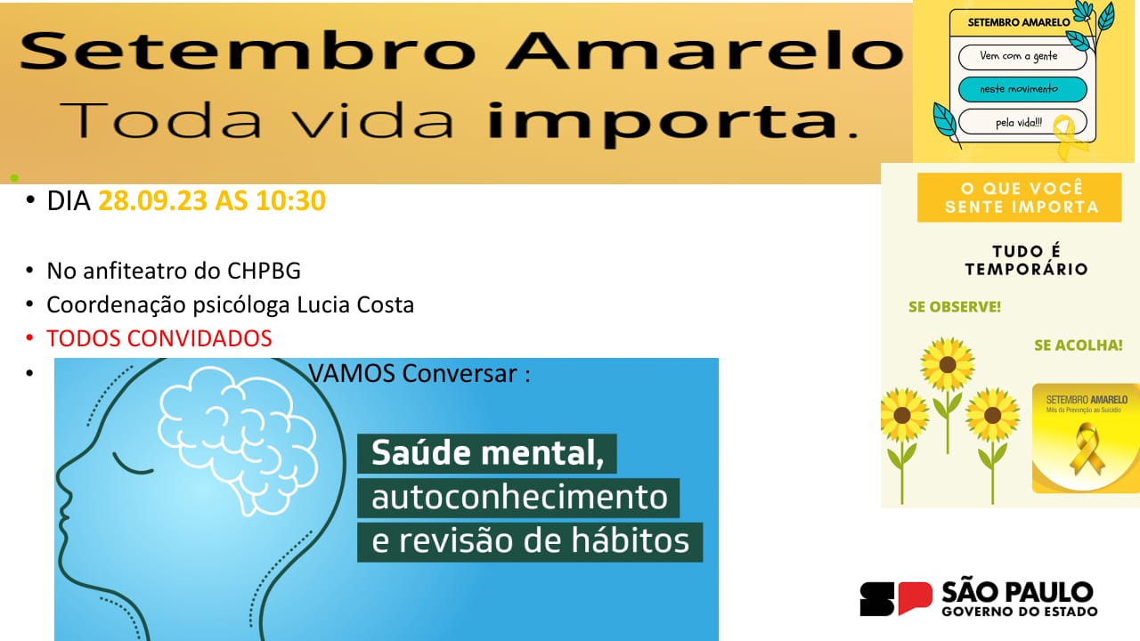 Neste mês de setembro, diversas unidades da Secretaria de Estado da Saúde de São Paulo estão realizando ações em atenção à Campanha Setembro Amarelo, que promove a conscientização a respeito da prevenção ao suicídio.