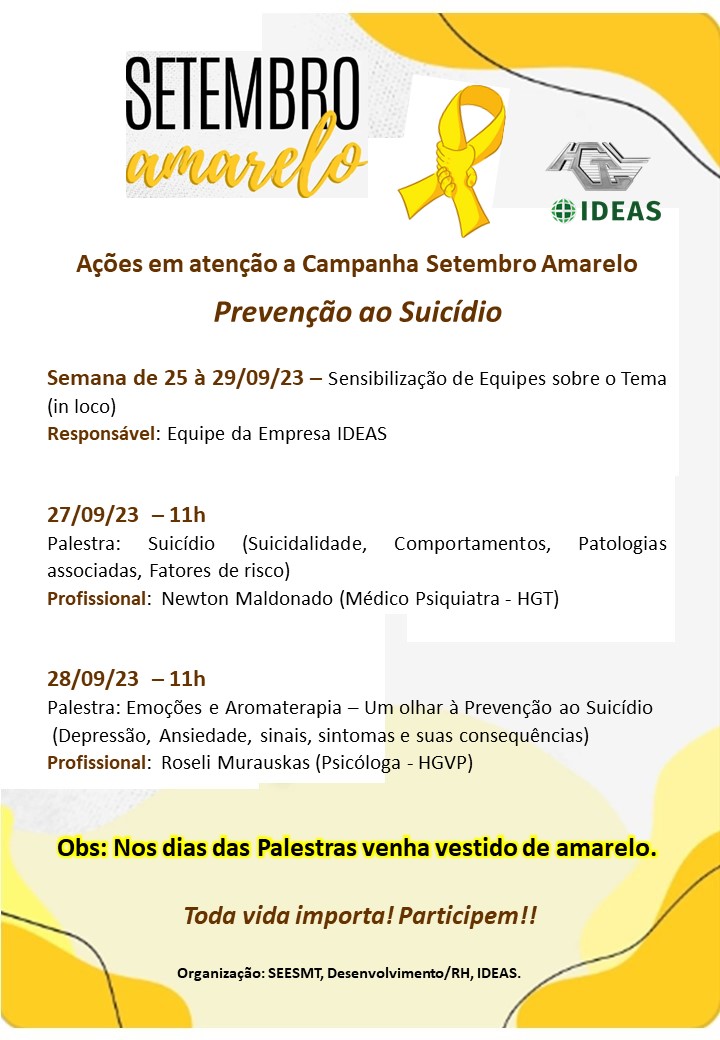Ações em atenção à Campanha Setembro Amarelo