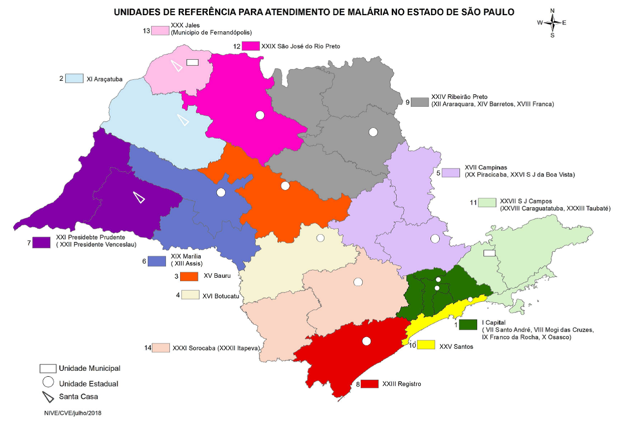 Para verificar a lista das Unidades de Referência acessar o link https://www.saude.sp.gov.br/resources/cve-centro-de-vigilancia-epidemiologica/unidades-de-referencia/malaria/malaria_unidades.pdf