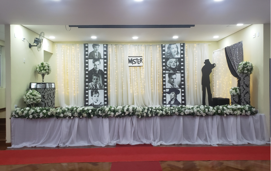 No grande dia o Auditório do Instituto ganhou vida, em uma decoração feita com tema de Hollywood para receber nossas celebridades: os 15 candidatos a Mister.